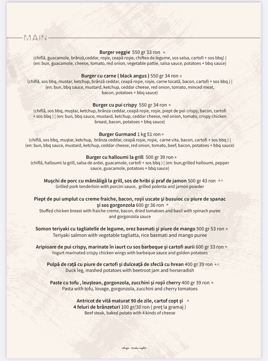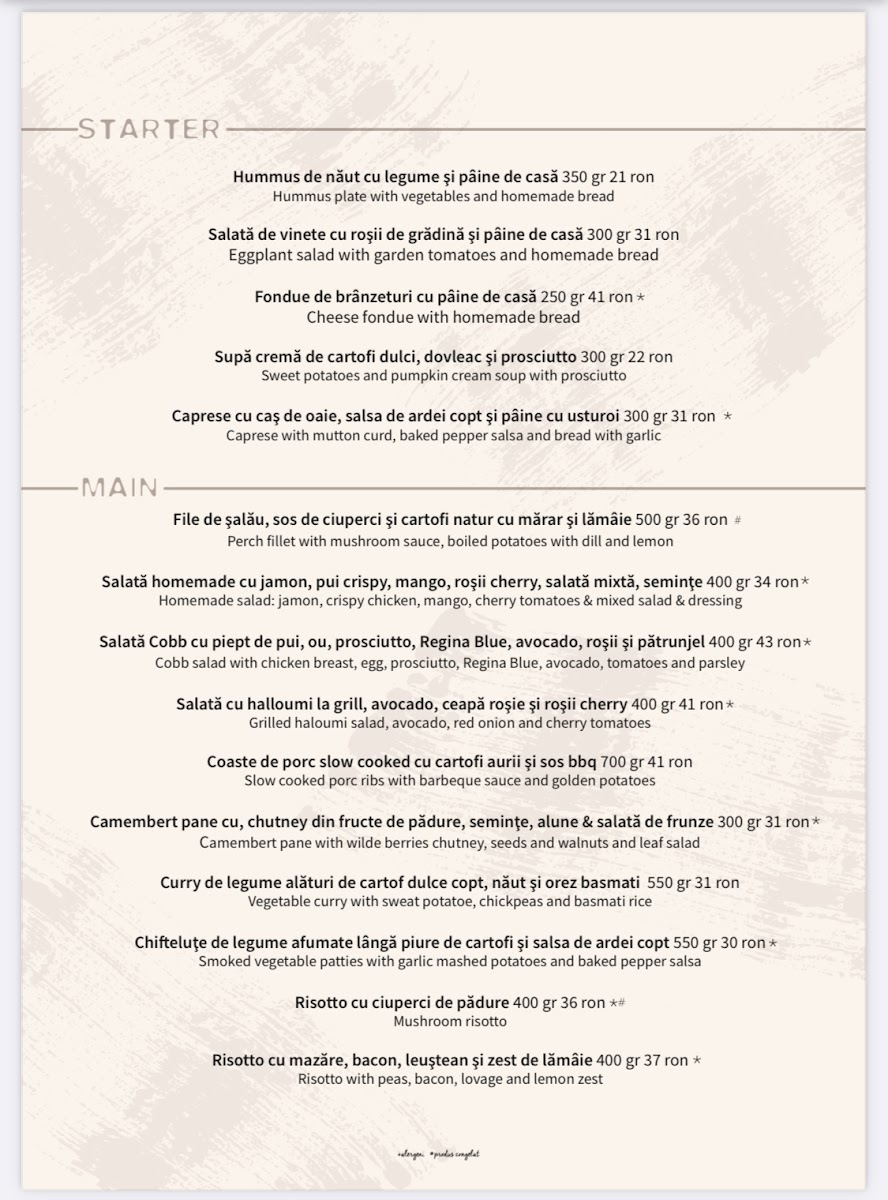 “ I used to come here often for lunch. I've tried most of their dishes, and I highly recommend the Camembert salad and the chicken with spinach and crème fraîche. The prices are fairly high, with dishes ranging from 40 to 100 lei. The interior is unique and has a cozy, home-like feel. ”